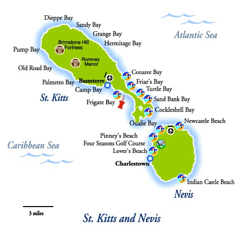 Située dans les petites Antilles, lîle de Saint-Kitts qui fait partie des Îles Leewards possède des plages comptant parmi les plus belles du monde. Elles sont situées sur la